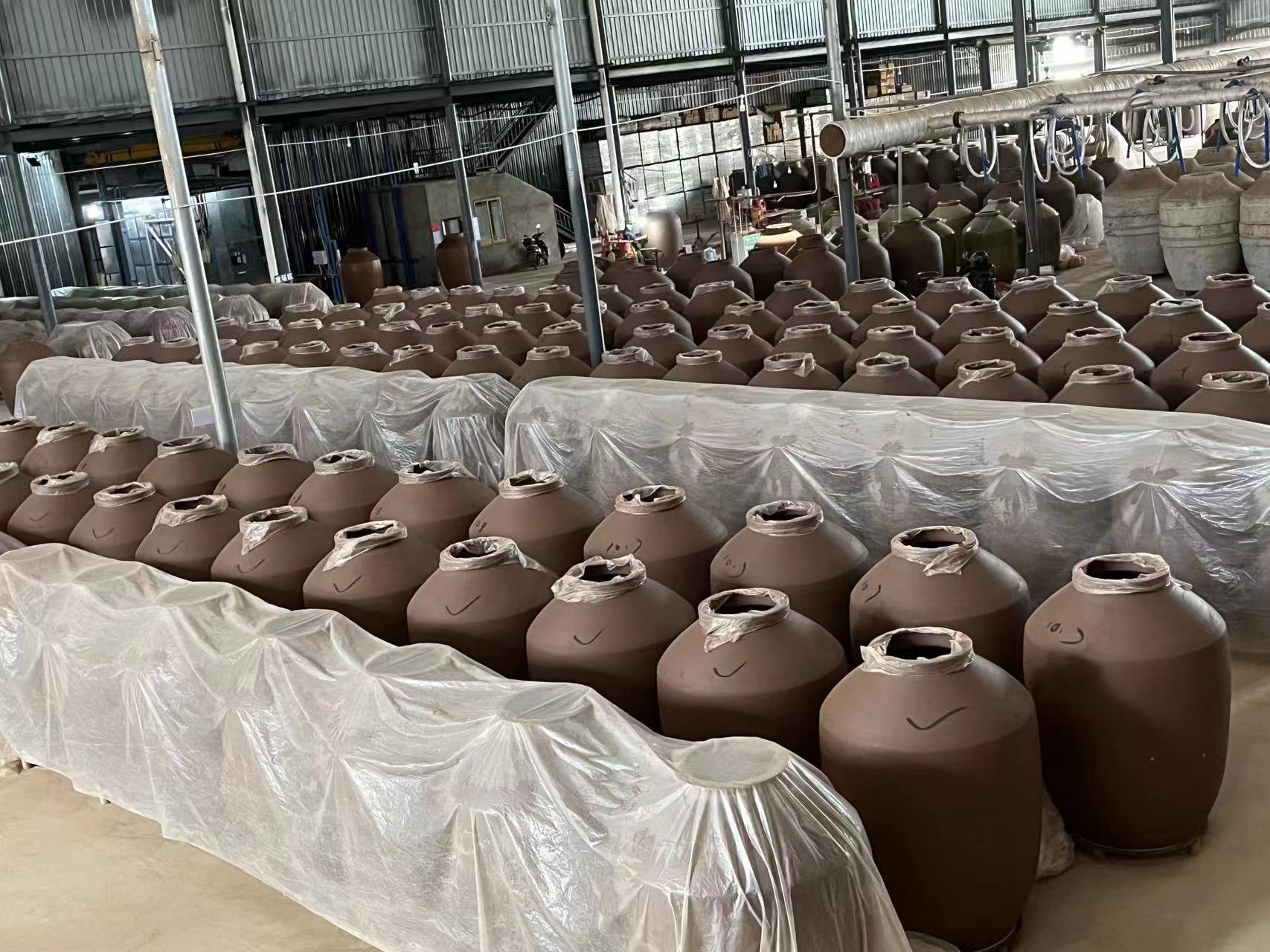 富順縣奇藝陶業有限公司成立于2021年,是制造、銷售、服務一體的生產型土陶企業。注冊資本1200萬元。位于富順縣古佛鎮鳳儀村3組,占地面積200畝。建有8條廂式窯爐,員工人數180人,年產噸壇、千斤發酵缸10萬余件。這一帶特有的天然原生態土陶礦泥,將傳統工藝與現代技術相結合,生產各類規格土陶酒壇、泡菜壇、發酵缸系列產品。產品具有不浸不漏,透氣性能好。耐酸堿,耐腐蝕,吸水率低,釉面均勻等特點。